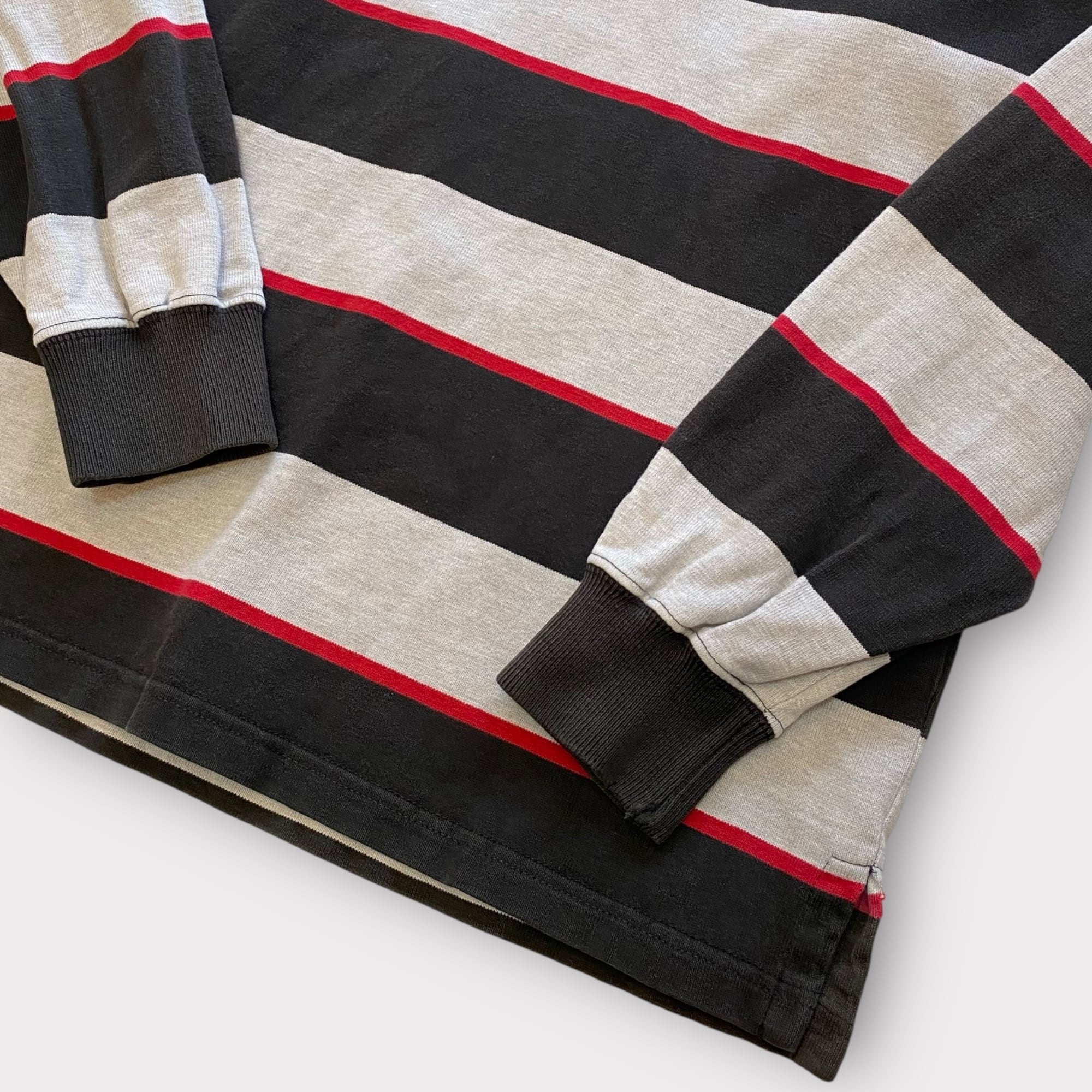 グレー×ブラック×レッドの太ボーダー柄で